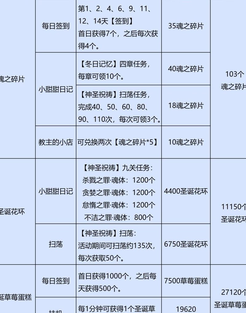 本次活动清空商店共需11000个圣诞花环,在挂机收益不溢出的前提下可全部完成,建议优先兑换、和。
