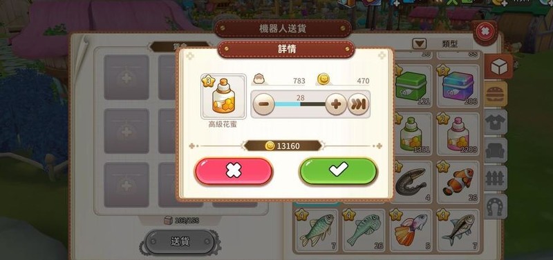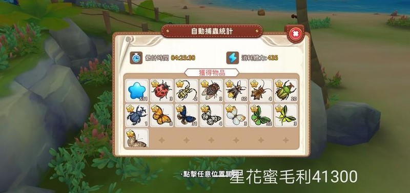 从图中可以看出,一星花蜜挂机获得毛利41090金币,花蜜成本为80乘以176,共计14080金币,消耗体力531点,经减免后实际消耗体力为435点,共减免96点体力。由此可测算出相关收益与消耗数据。