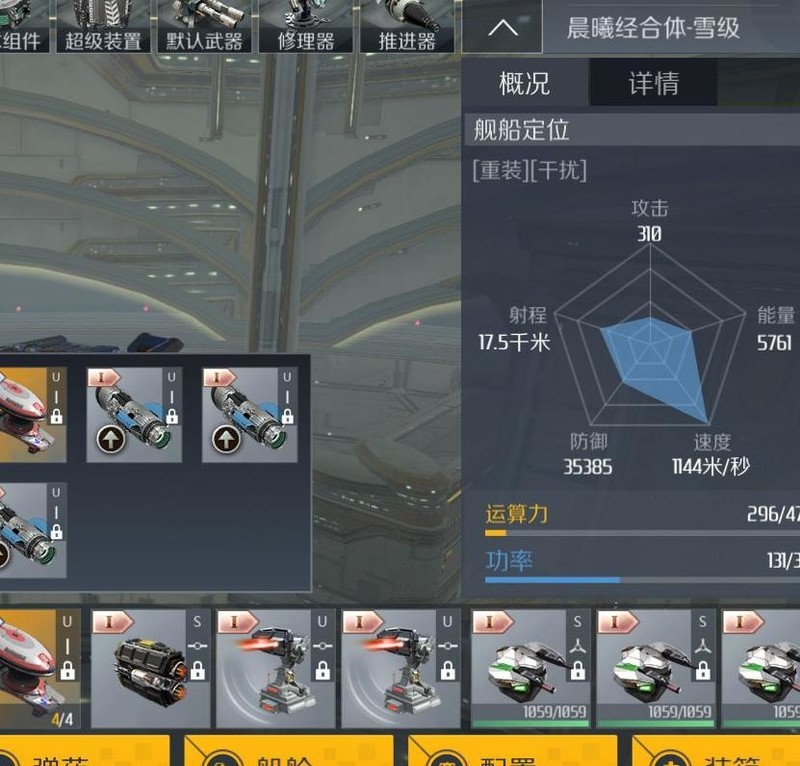 组件槽:高精度粒子追踪装置、粒子聚能模块、强化护盾通量线圈与能量恢复增强器。