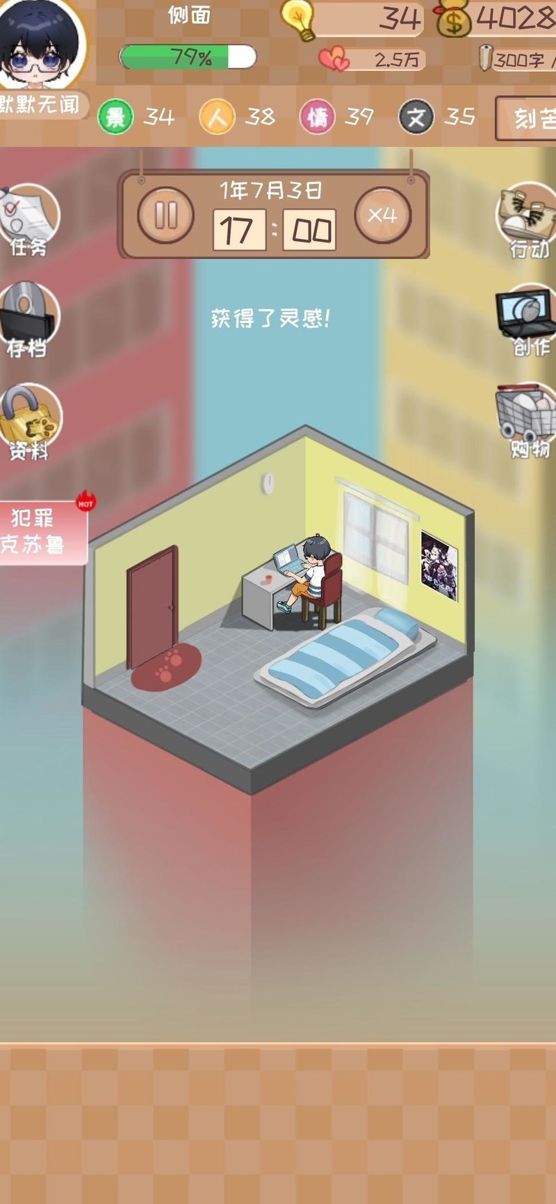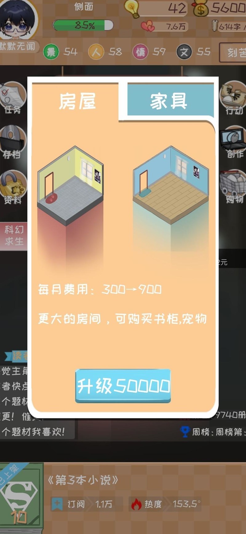 观看广告或使用手机积累灵感至30点以上,开局优先选择沉淀与迎合策略以吸引粉丝。继续经营首个网站,若各项属性均达50点以上,可直接使用灵感加成(当四维超过50时,首站评分提升10)。在首个网站赚取超过50000资金后,即可购置房产。
