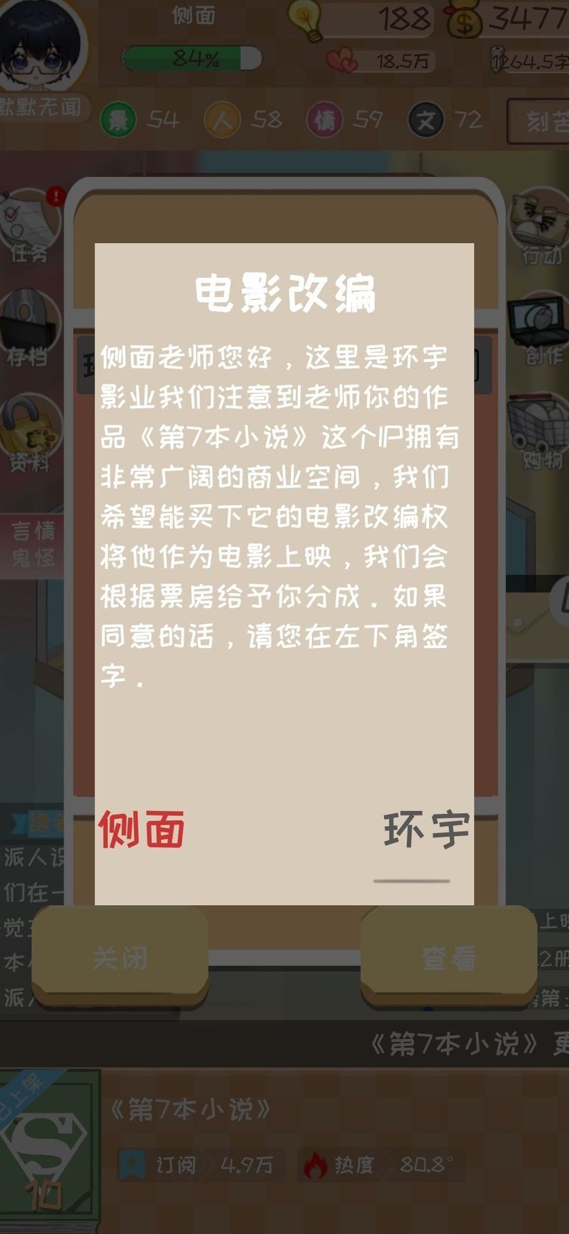 第二个网站可直接采用+4灵感策略,结合沉淀与推进模式启动。一旦电影完成签约,立即切换为推进+迎合组合,侧重提升概率与票房表现。此后每隔两天左右更新一章,保持活跃度以防评分下滑。持续刷取灵感,确保资源积累。从签约至电影上映全程坚持每日更新,运用推进+迎合策略不断优化数据。此阶段尤为关键,初期写作速度影响有限,但随着状态回升、体力恢复,后期将实现快速突破。