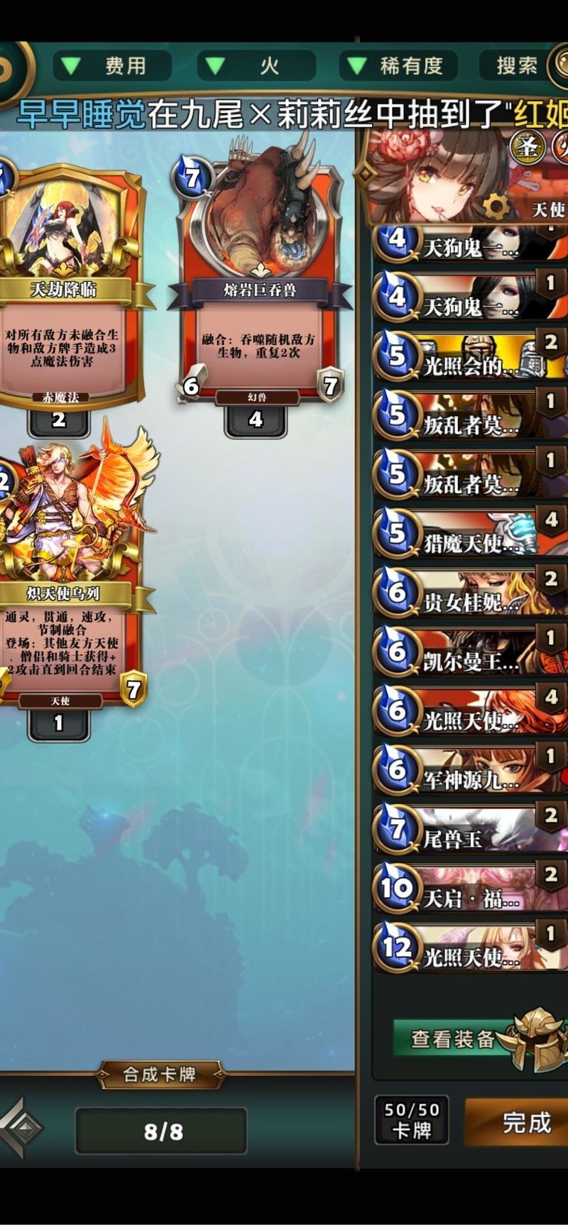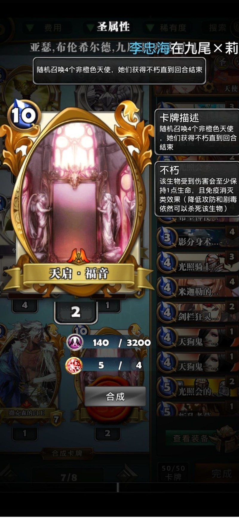 天使狐认为天启牌最契合,搭配光照天使可在后期形成翻盘关键,是后期重要的牌面组合之一。