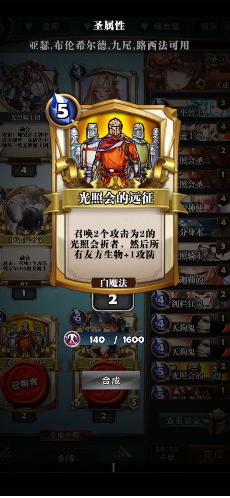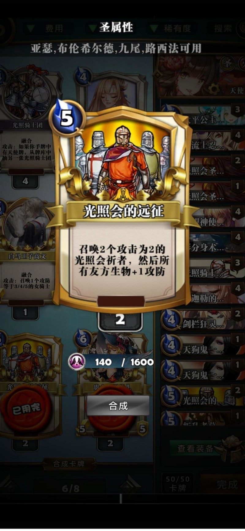前期优先铺场,搭配希望神使、剑栏狂灵、光明照会、军神及本体,协同效果显著,数量越多越好,全力投入。