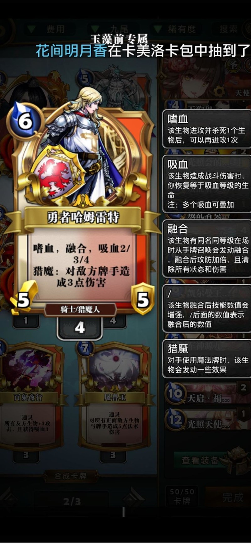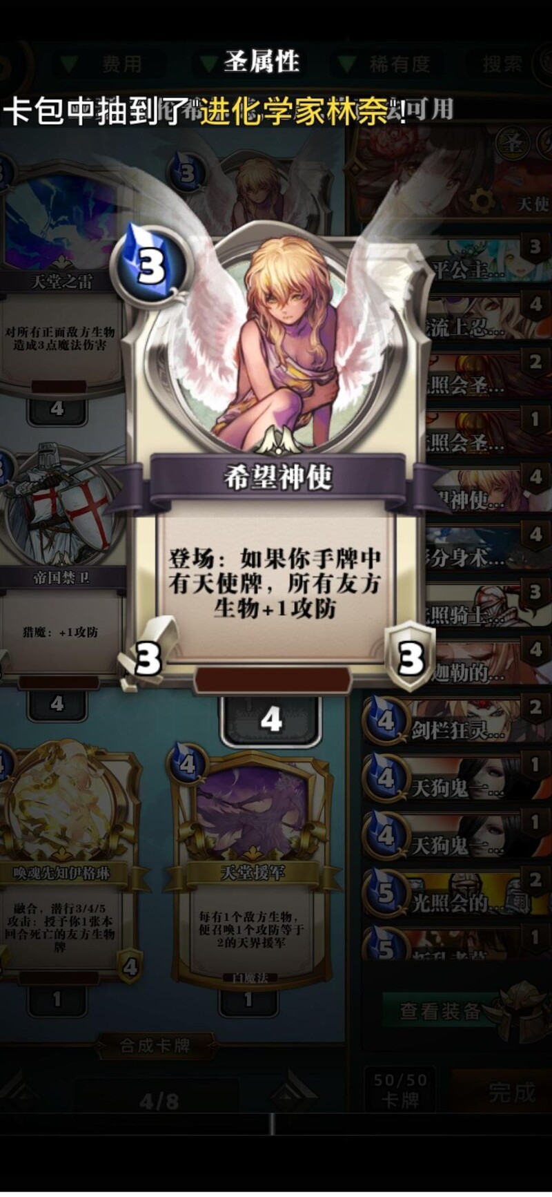 天使卡实用性强,拉满属性,内战时对手不朽残血互撞后释放,收割残局十分畅快。