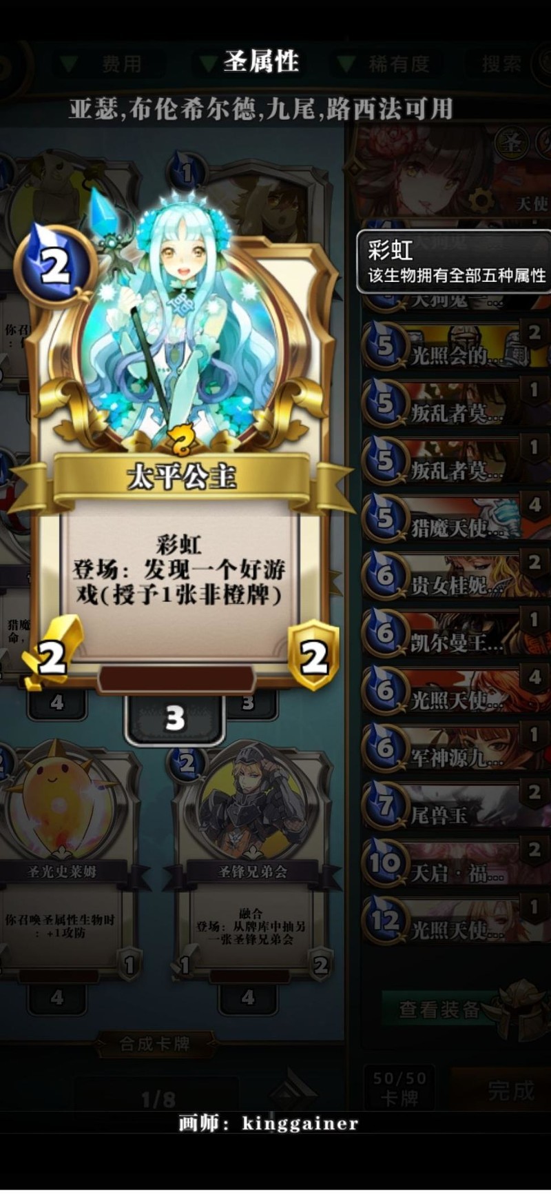 圣卡头牌,全力带上,越多越好,冲到顶峰