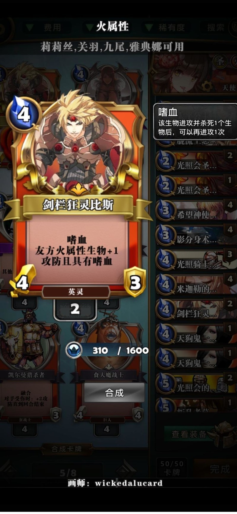 嗜血效果可叠加1/1,卡组多数单位均能受益于其增益。