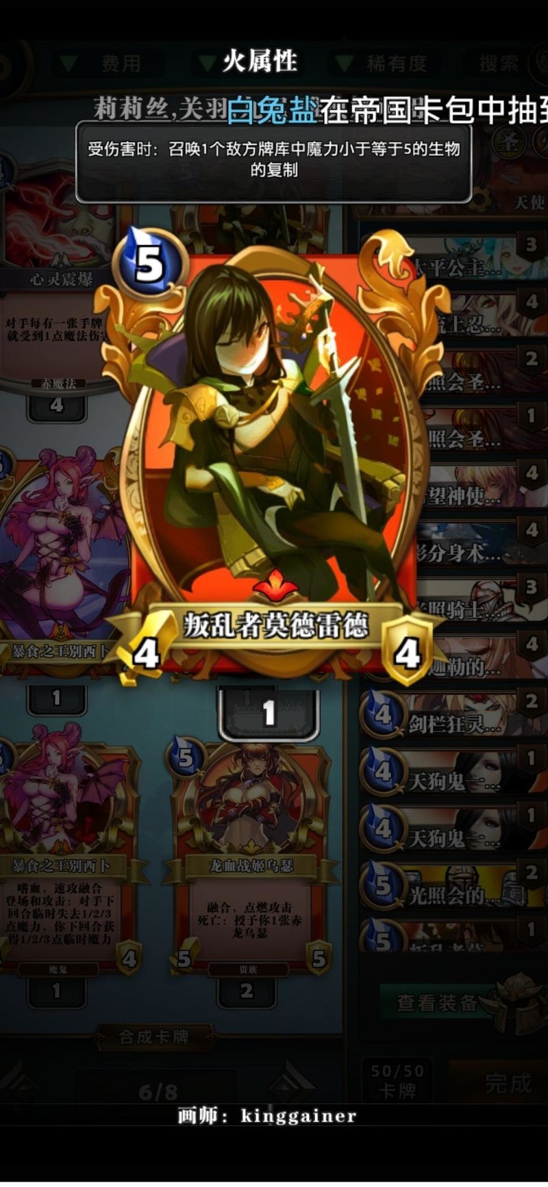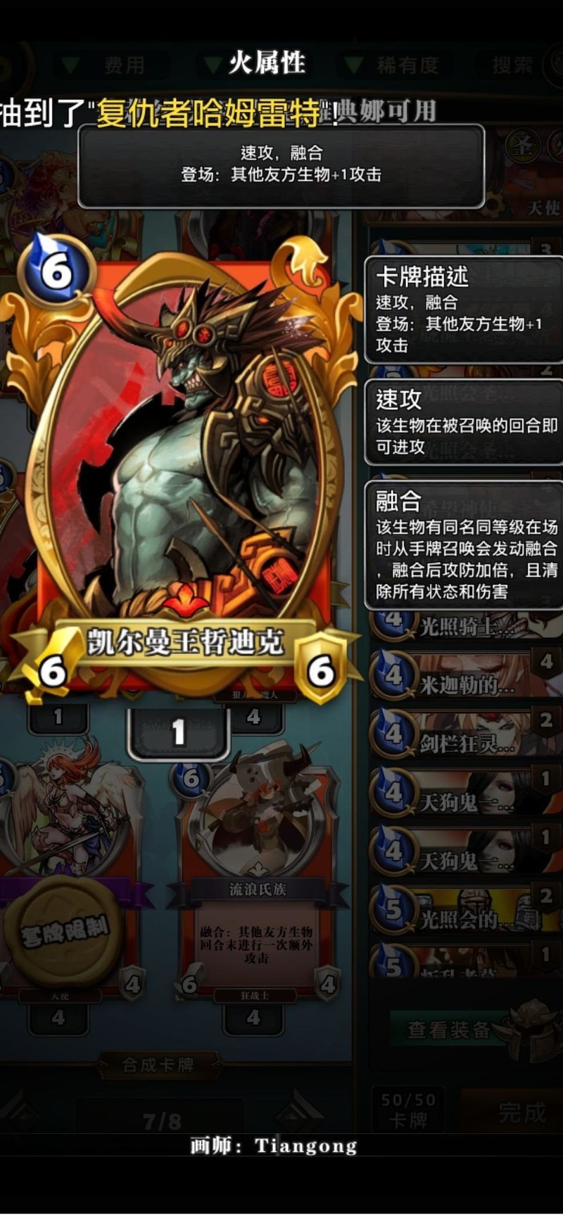 个人觉得强度一般,但看在职业红卡的份上有就带上。融合后较强,曾领先却被对手连续两张融合逆转局势。