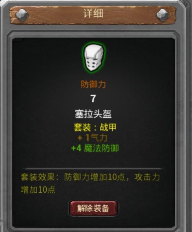套装属性:提升11点物理防御与1点魔法防御(存在轻微异常)。