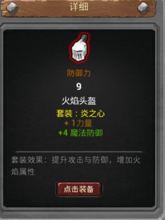 套装自带力量、耐力与魔法防御属性,随机刷新,首件属性最优。