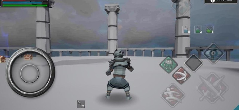 在第四关利用地形高低差使角色跌落,生命值降至5%左右后测试圣光祈祷效果。第一次穿戴完整教团套装,生命值回复至满;第二次在属性不变的情况下脱下教团头盔,重复操作后发现仅回复至80%,说明装备对技能治疗效果存在影响。