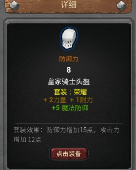 穿戴套装可提升15点物理防御与12点物理攻击能力。