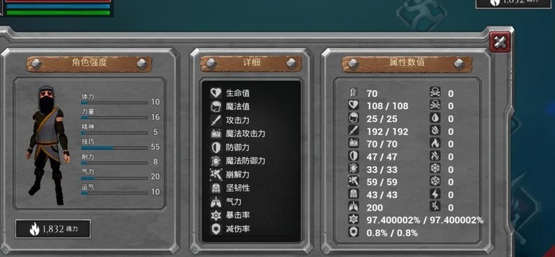 将头盔附加的20点生命及其他属性加入后,用全套属性图减去额外属性与无头盔状态的人物属性,最终得出的结果令人震惊!