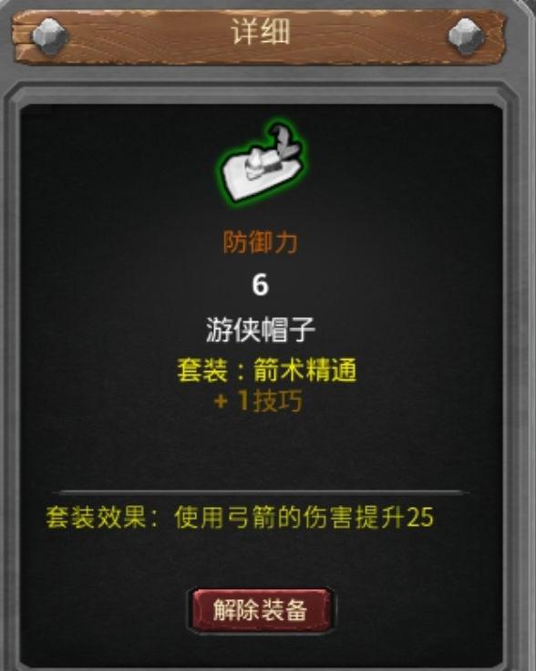 穿戴套装可使弓箭伤害增加25点,惊弓技能同样享受此加成。