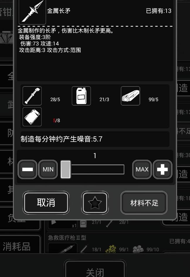初期建议优先搜索而非拆解,因背包容量有限,搜完第一天资源后即可制作扩容背包。多探索商场,有机会直接获得背包,食品店则可选择性忽略。尽早打造金属长矛,面对前期低阶怪物几乎无惧。同时优先开垦田地、建造净水装置,确保食物与饮水稳定供应,实现基本生存无忧,为后续发展打下坚实基础。