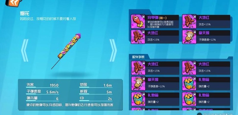 穿甲烟花末端伤害是普通烟花的1.6倍。