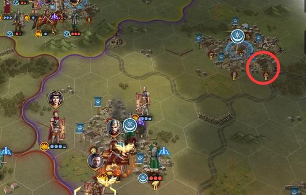 第四回合攻占城市后将触发友军事件。派遣标枪手、庞培与骑兵进攻右上角的五级城池,其中庞培需站于红圈处负责攻城,另配一单位(推荐骑兵)准备占领。其余两名关键角色中,当庞培位于上方红圈时,投矛手应独自前往右下红圈,清除敌方弓箭将领。