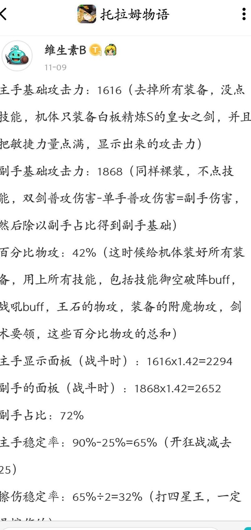 托拉姆物语双剑玩法深度解析:稳定率如何影响输出?通过简易数学模型,揭秘稳定率提升副手占比与输出期望的双重收益,结论简洁明了,助你高效配装。