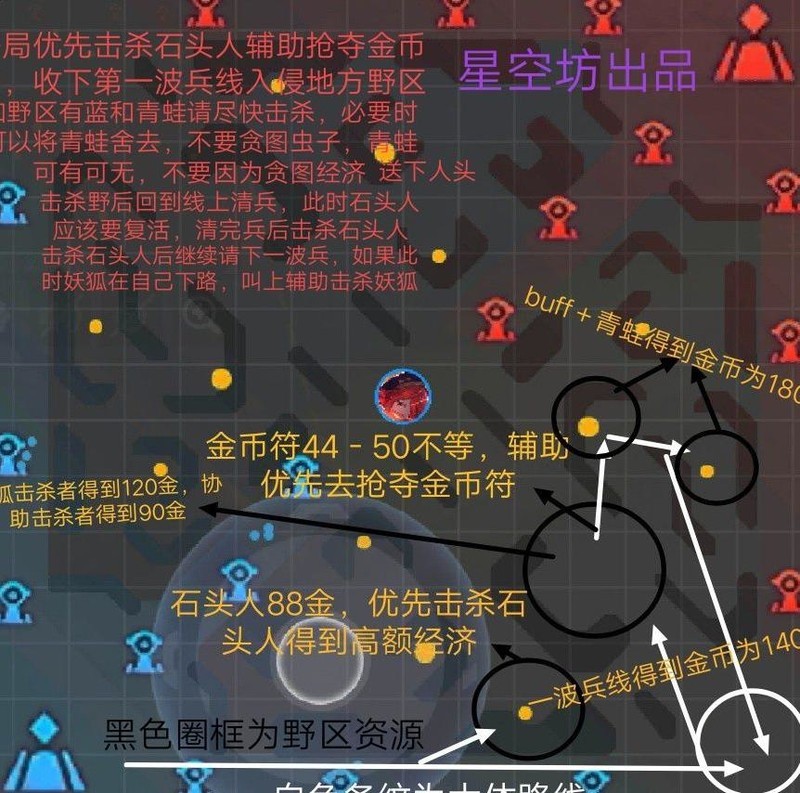 本次攻略将重点讲解不同位置的对线技巧,涵盖射手、辅助、中单和上单四个路线。打野未包含在内,因此前期经济分析已详述野区收益,打法较为灵活,此处不再赘述。