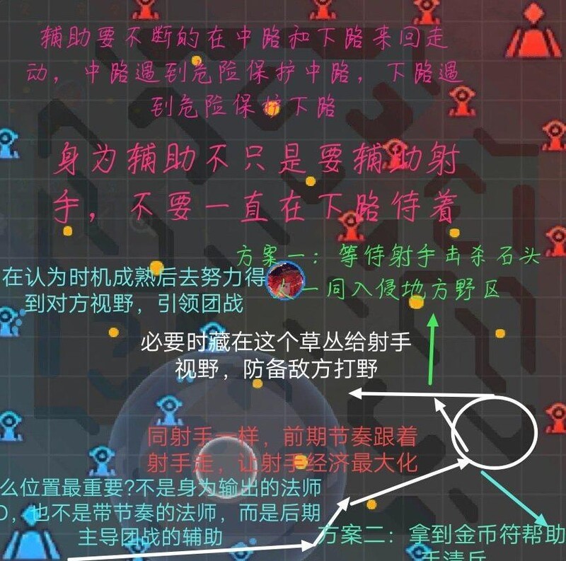 辅助无需长期留守下路,可灵活游走中路支援。中路草丛是消耗敌方中单血量的理想位置,能有效协助队友建立优势。