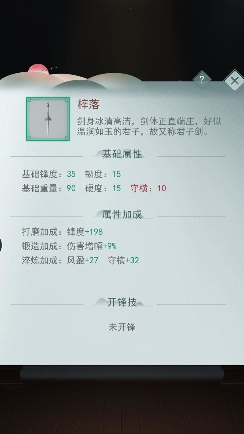 先介绍梓落的基础属性,再与第一章获得的醒世进行对比。无需提及无锋,重点在于两者之间的差异与特点分析。