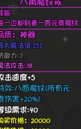 35级节日副本右侧小BOSS会掉落八角戒,装备可提升15%元素伤害。