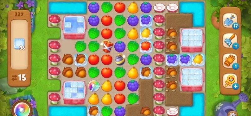 仔细观察后会发现,收集冰块颇具挑战,需克服重重障碍才能让冷却机正常运作。其中最大的阻碍是蘑菇,尤其是位于左侧深处的那些。要清除它们,必须先逐一突破土块、橡实以及两台冷却机的阻挡,过程复杂且需要策略布局,稍有不慎便难以推进。