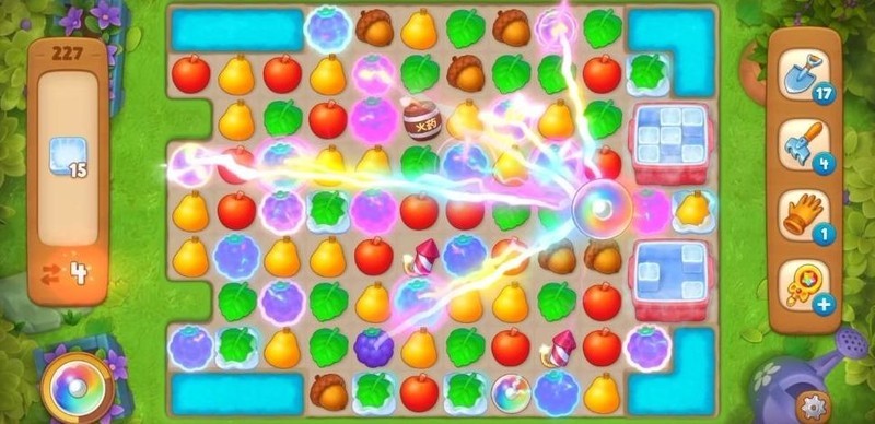 在消除过程中,应优先将可合成的元素制成道具,为后续双彩合并创造条件。本关障碍与冰块布局复杂,若不善用各类道具协同作用,极难顺利通关。尤其是左侧蘑菇的位置设计特殊,需耗费较多步数,对策略要求较高。