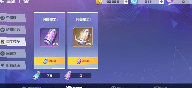 初期主要消耗蓝色星尘,商店虽可兑换紫色和金色星尘,但新手无需急于兑换后两者。