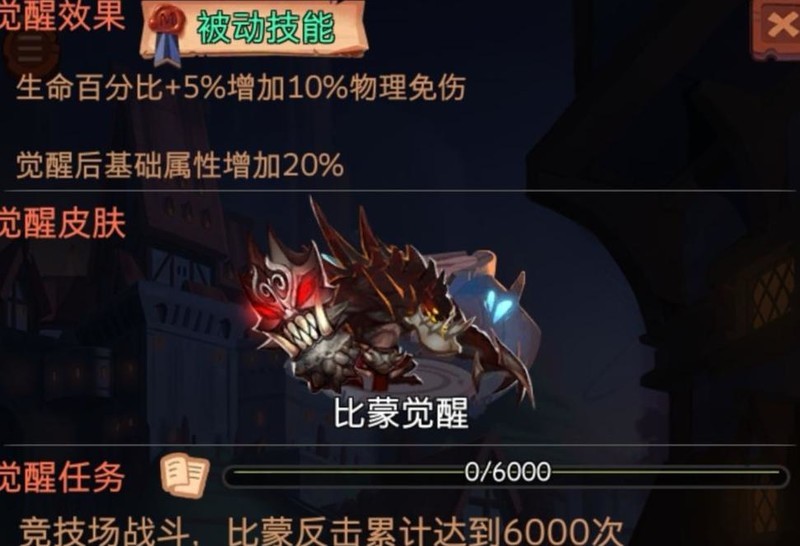 在竞技场累计完成六千次反击即可觉醒比蒙。