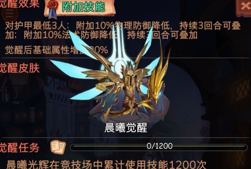 晨曦觉醒任务需在竞技场释放技能满1200次。