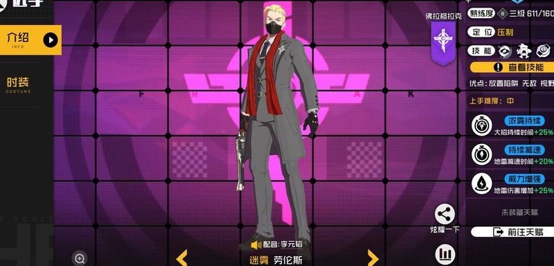 官方将其归类为压制型角色,但实际上更偏向游击风格。与其他三位压制型角色不同,迷雾的压制能力主要依赖地雷。布设好雷区后,可灵活参与突袭或游击作战,配合队友输出。应重点盯防关键入口,及时补枪控制局势。尽管其手枪单发伤害较高,但容错空间极小,六发子弹通常需命中四发以上才能击毙普通目标,面对重装敌人则显得力不从心。因此,行动时应注重团队协作,避免孤军深入;即便单独行动,也须预先规划退路,确保安全撤离。