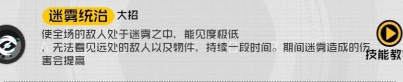 大招是迷雾的核心技能,配合天赋可大幅延长持续时间,无论输出还是推进都能拥有充足的时间优势。