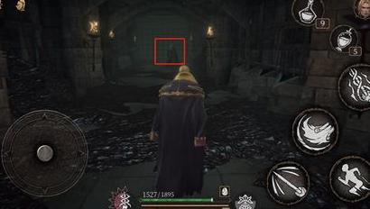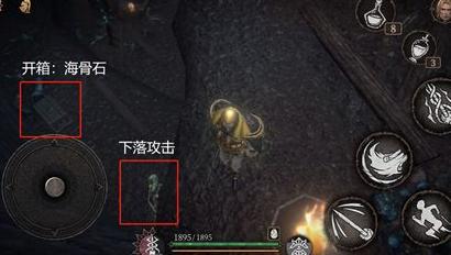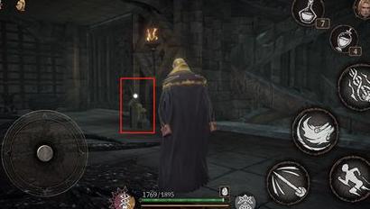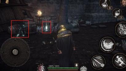 继续前行,红框标记小怪,柱边火盆处可拾取道具。
