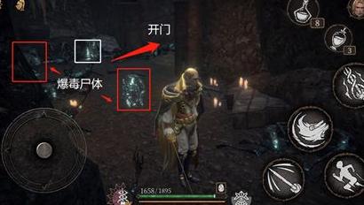 途中可拾取火盆道具,继续前行至大拱门,其旁亦有道具可收集。