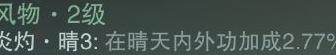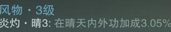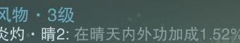 进阶等级越高,属性加成越强。同为晴炎3时,三级风物的晴炎2提升的伤害高于二级风物的晴炎3。