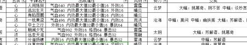 接下来分析出战属性,输出核心在于内功与暴击,以此为基准,主心至少需三个,优先选择兼具内功和暴击属性的卡片进行筛选。