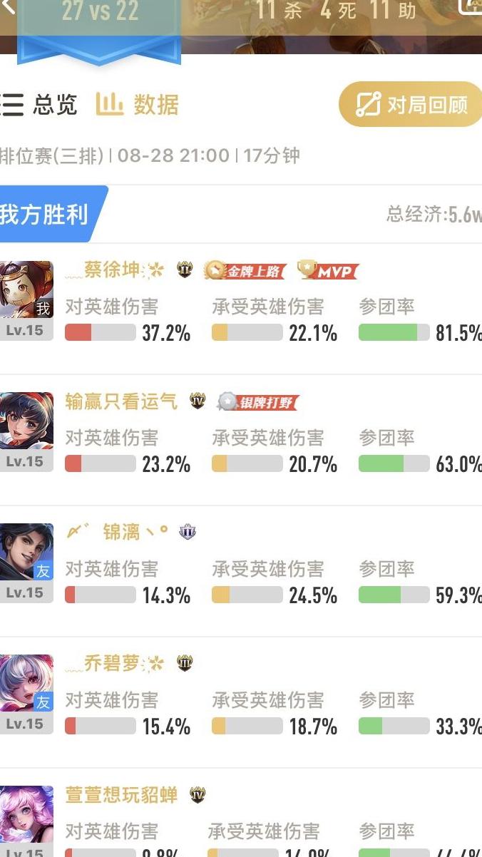 感谢你的付出,承受伤害、保护队友,正是辅助价值的体现。