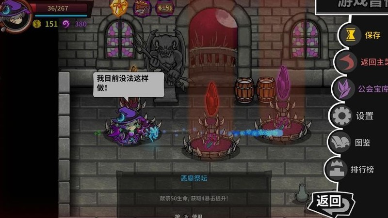 在游戏的血之祭坛处,若生命值低于50则无法使用;但恰好为50时点击,却会突然死亡,令人意外。