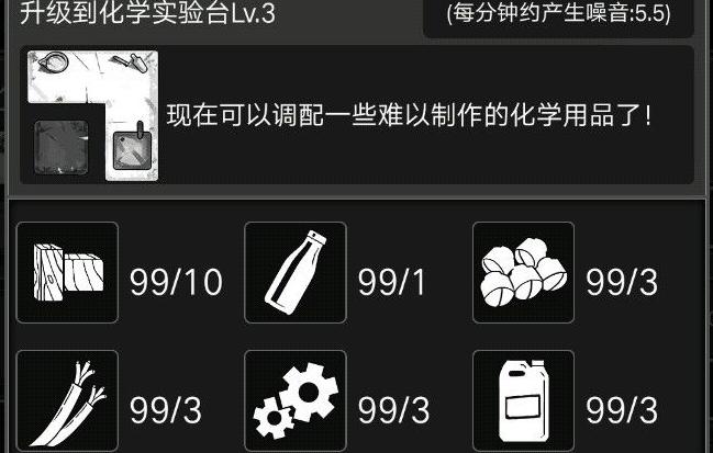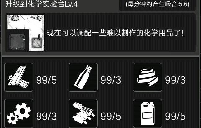 该建筑是基础设施中的关键项目,必须优先升级。由于其最高等级仅为5级,升级速度较管钳工作箱更快。建议优先提升化学实验台,并务必升至满级,以便解锁高级金属材料的制作功能。