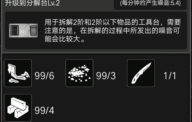 该建筑主要用于后期材料处理,最高可分解五阶装备或材料。前期资源有限,不建议优先升级,以免影响其他建筑发展和装备进阶进度。但到了游戏后期作用显著,可通过分解抽箱获得的闲置物品,如枪械、刀具等,回收资源,提升材料利用效率,是后期资源循环的重要设施。