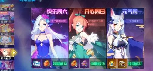 每周六和周一登录可分别领取紫色快乐食物自选包与橙色元气自选食物箱各一个。