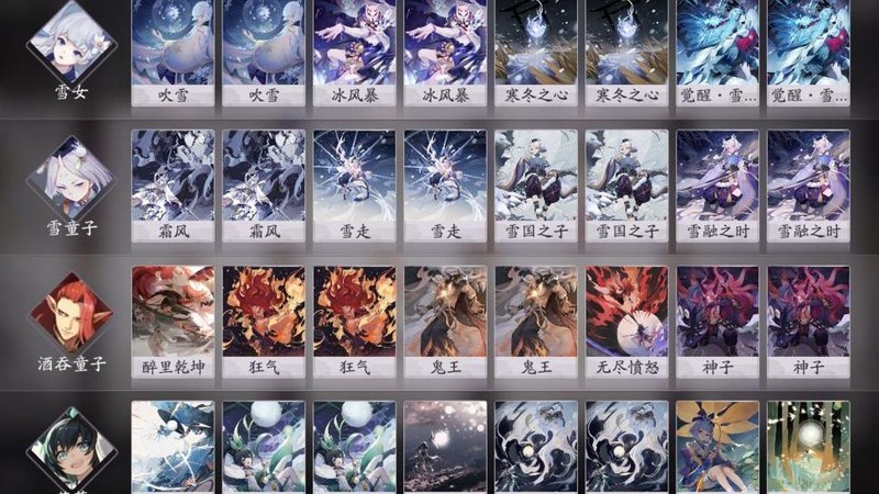 接下来介绍第一套变种卡组——雪童子。这套牌组操作流畅,优势明显。相比白狼需依赖离+援护或离+文射等组合才能构成威胁,雪童子单卡即可发挥作用:1勾玉双风可眩晕对手牌手,2勾玉雪走能稳定控制并解场,场面压制力强,实战表现十分出色,因此更受青睐。