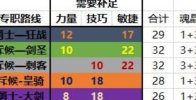 狂战职业的12+5表示在满足12点力量专职要求后,额外多出5点,其余职业的合计数值依此类推,具体原因后续将作解释。