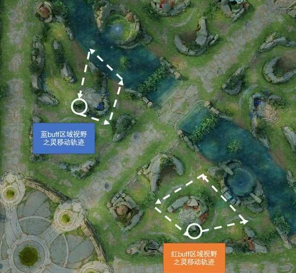 当己方上路或下路的二号防御塔被摧毁后,该机制才会激活。需在塔废墟附近停留约两秒,即可召唤出视野之灵。其冷却时间为三分钟,前提是已成功使用过一次。视野之灵生成后,大约两秒内进入野区开始巡视。在红区巡行三圈,每圈耗时约11秒;蓝区每圈则约为12秒。其行动路线固定,并会在己方小地图上清晰显示。敌方虽无法在地图上看到视野之灵的标记,但可通过实际画面观察到它的存在。视野之灵经过时会持续提供周围区域的视野,包括草丛等隐蔽位置,帮助掌握野区动态。其运行轨迹示路径所示,按既定顺序移动。