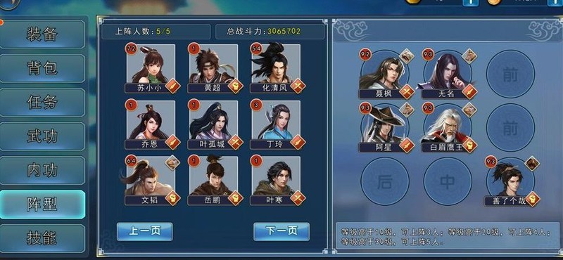 主寨共有五位首领,前三位为小boss,挑战难度较低。柳白衣(1号)建议采用113阵型,主战拳手置于上路,副拳手中路出战;蓝凤鸣(2号)同样使用113阵型,但主拳手改走中路,副拳手上路策应;巫十三(3号)也适用113阵型,主拳继续上路推进,副拳中路配合。这三场战斗整体阵型保持稳定,仅需微调拳手位置,辅以适当存档重试,基本可顺利通关,故不另附图示。第四个对手葛晟与最终boss莫无崖(5号)挑战要求较高,需先清除全部七星桩方可进入最终战。推荐改为221阵型,核心思路是规避敌方血魔的强力输出,集中主力在前两回合快速集火压制对方关键单位。具体阵容搭配与战力配置可参考首条图文说明。