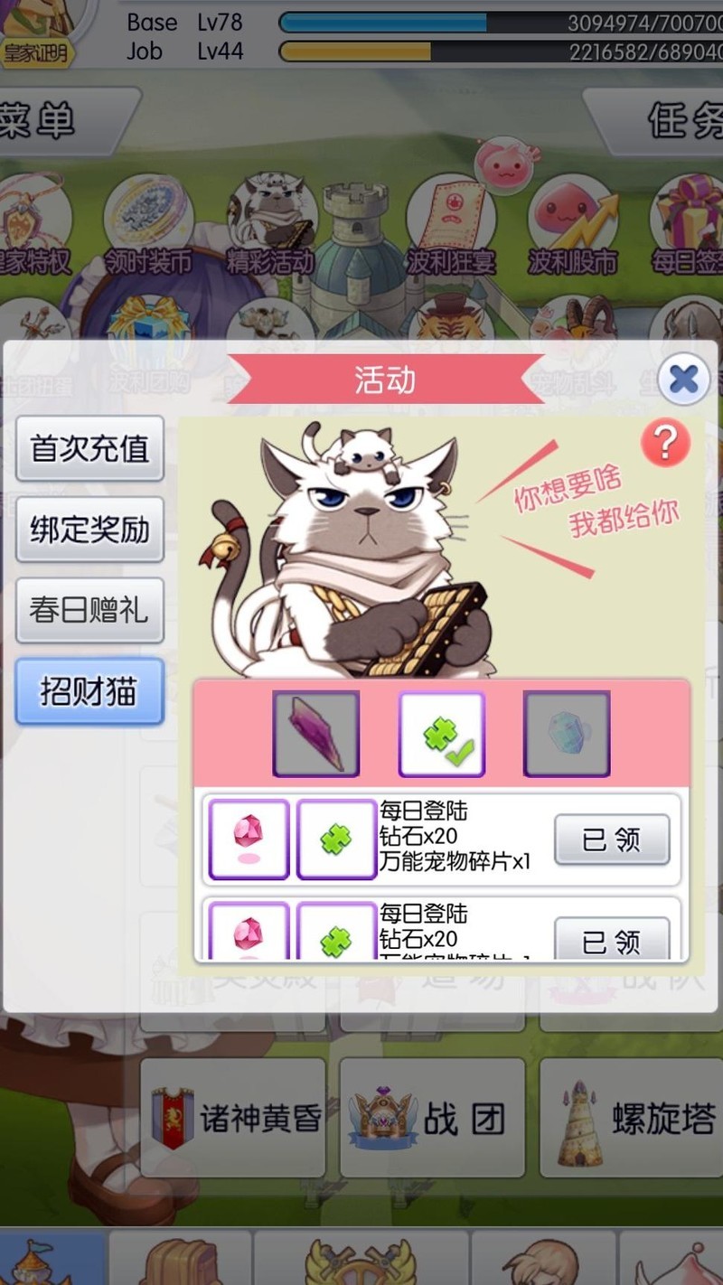 当周围出现发光提示时,代表有新活动或已开启,及时点击参与并领取奖励。在奖励中优先选择万能宠物碎片,这是最优选项,无需犹豫。