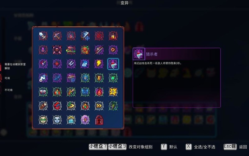 暗杀者S+变异极为强力,推荐优先点选,尤其搭配紫流近战武器时效果惊人。开启后可进入隐身状态,敌人无法察觉,便于连续实施暗杀。轻松实现无伤通关,配合诅咒之剑更能达成全员击杀目标,完美解决输出与生存双重难题,是高难度挑战的理想选择。