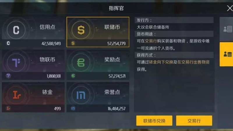 联储币是第二银河交易系统中的主要货币,又称黄币,可用于购买道具、研发蓝图、扩展植入体页数以及兑换信用点等功能。