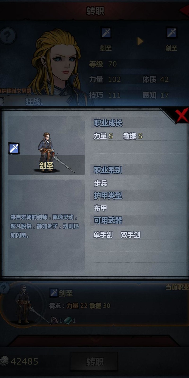 敏捷、力量与体质俱佳,完美契合剑圣职业的核心需求。
