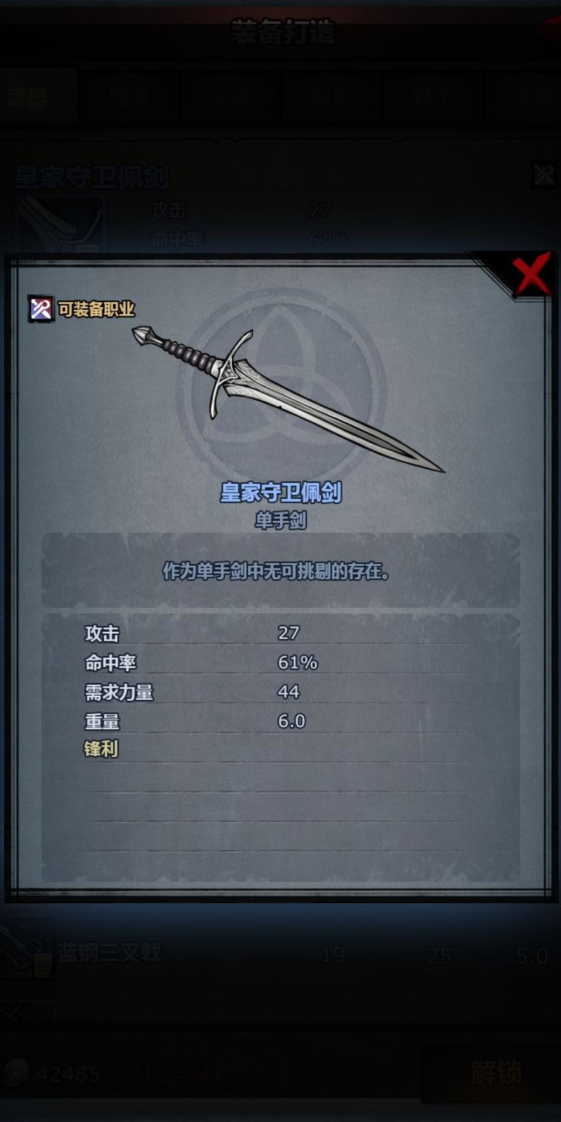 皇家守卫佩剑轻便锋利,克制布衣皮甲,深受剑圣玩家喜爱。